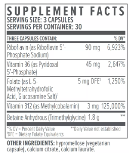 When taken daily, the Biote Methyl Factors+ provides five essential methylation nutrients in their most bioavailable forms: Methylfolate (5-MTHF), active B6, active B2, active methyl B12, and betaine.*
